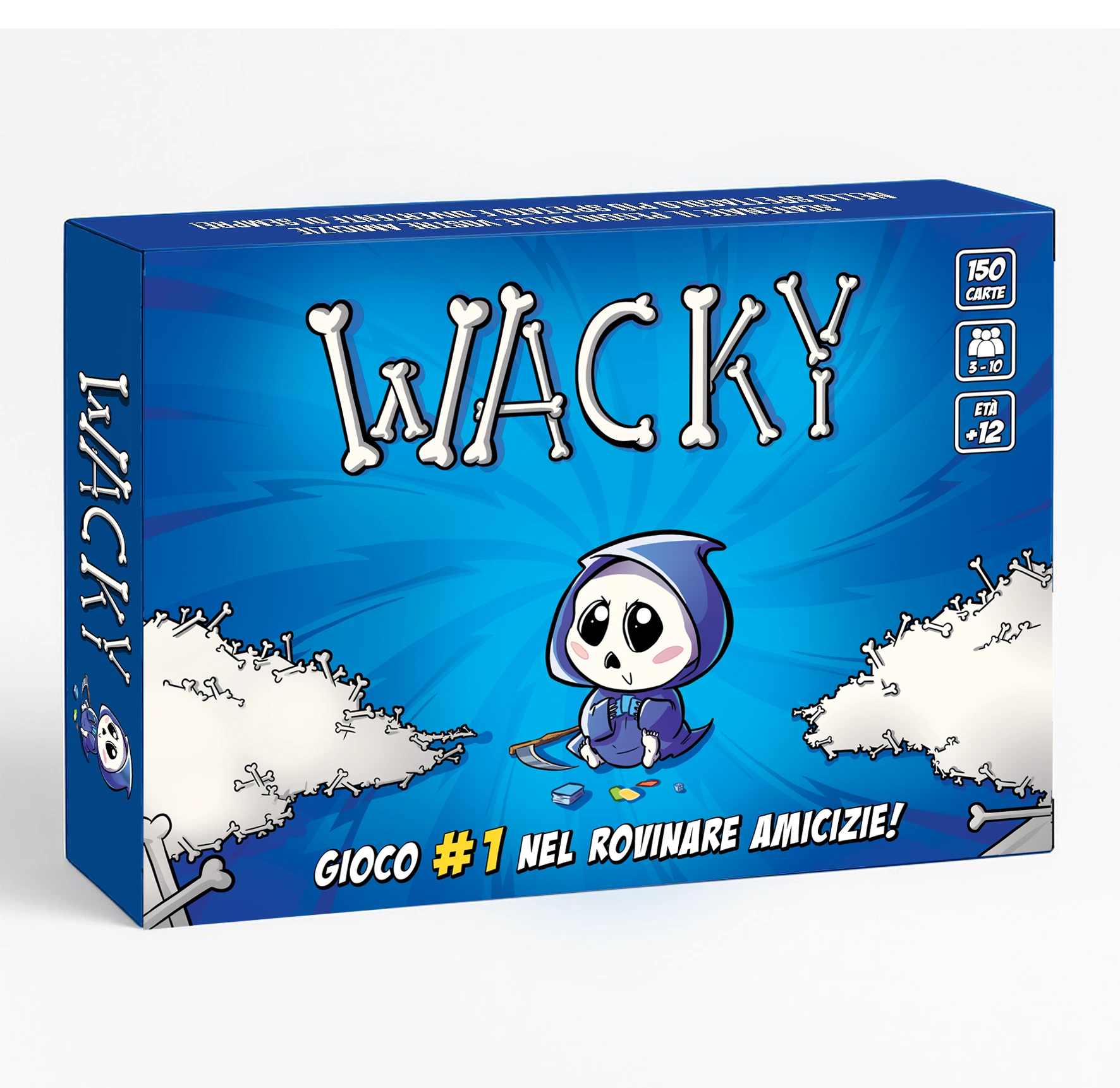 WACKY è un party game esilarante, caotico e pieno di colpi di scena. L’obiettivo è semplice: iniziare il proprio turno con esattamente 9 carte in mano. Sembra facile? Per niente! I tuoi amici faranno di tutto per toglierti o riempirti di carte, ma se sopravvivi fino all’inizio del tuo turno con 9 carte… Congratulazioni, hai vinto!